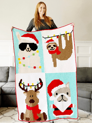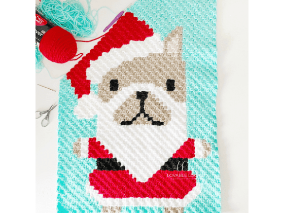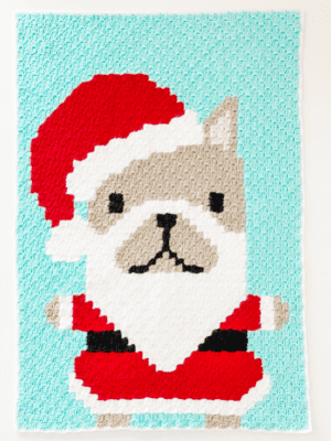 If you’re looking for corner to corner crochet Christmas patterns, look no further! This adorable corner to corner (C2C) French Bulldog in a Santa suit is just one of four Holiday patterns that I am designing for a corner to corner graphghan.