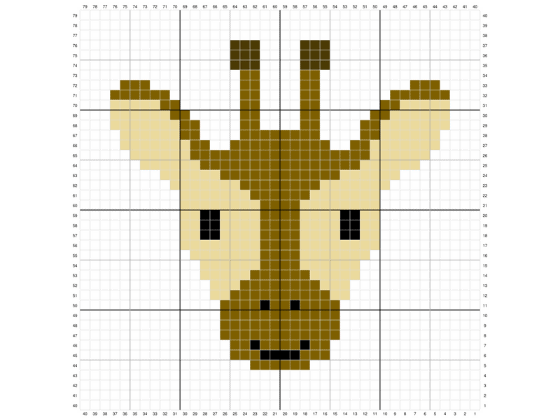 ↗ Row 60: white x 5, tan x 4, brown x 1, white x 5, dark brown x 2, white x 3