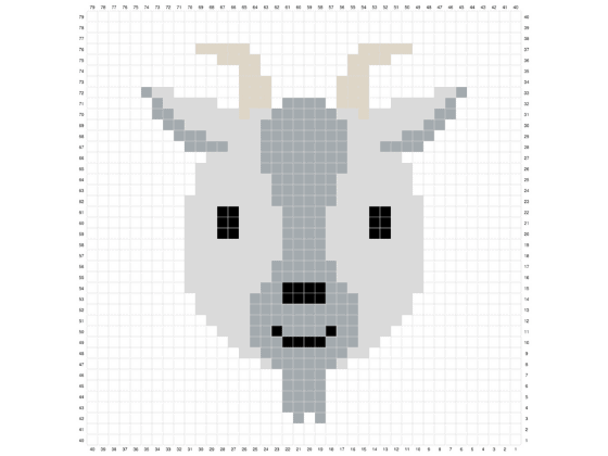 ↗ Row 40: white x 11, gray x 7, dark gray x 5, gray x 4, dark gray x 1, gray x 5, white x 7
