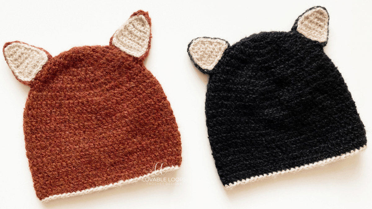 When you first glance at these simple crochet animal hats, you might not be sure what animals they represent. That’s the idea. While many of my crochet animal hats are very detailed in their designs, these are meant to be more subtle. They’re intended as either cat or fox designs. However, you might see a different animal in there.