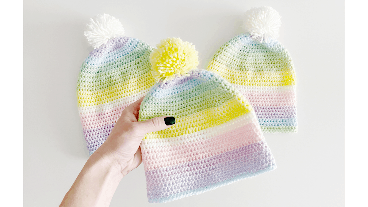 Please, check your gauge before you begin. You may need to use a hook smaller or larger to achieve the gauge. This is a very important step. If you don’t check your gauge, you may end up with a hat that is too large/small.