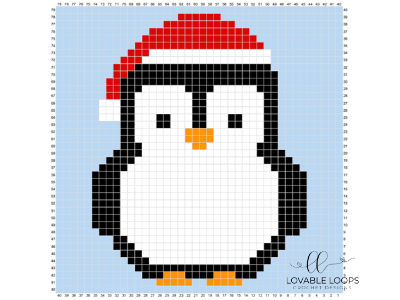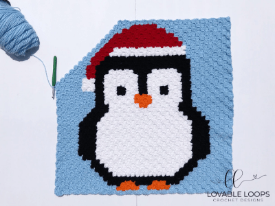I wanted to make something for Christmas in July so I designed this adorable Penguin in a Santa Hat blanket. If you don’t want to limit the blanket to Christmas, just change the color of the hat from red to a winter color like a pretty shade of dark blue.