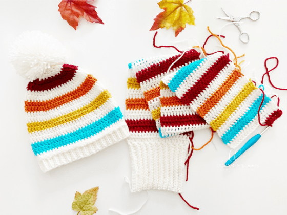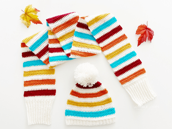 This Fall Fling set is my first hat and scarf set. It was really fun to design. I used a color palette to help with color inspiration like I did with my Color Pop Beanie. Both are designed for an adult. This set would make a great gift for someone for the holidays.