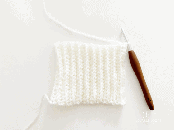 Row 1: ch 2 and hdc once in the top of each row of the ribbing, turn [20 hdc]