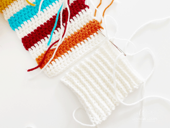 Fasten off the first ribbing you make and set aside. This will get sewn onto the end of the scarf.