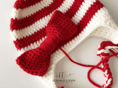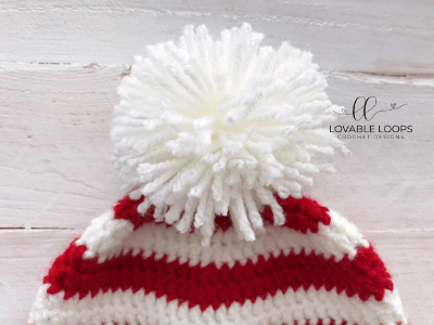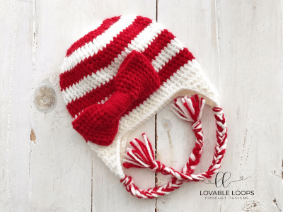 Just in time for the holidays- Candy Cane Beanie! I had originally designed this hat with the adorable bow but as I was crocheting, it occurred to me that this hat would also look super cute with a huge white pom pom on top. So, you pick which you like better! Please share your pictures with me! Tag me on Instagramlovable_loops if you make your own!