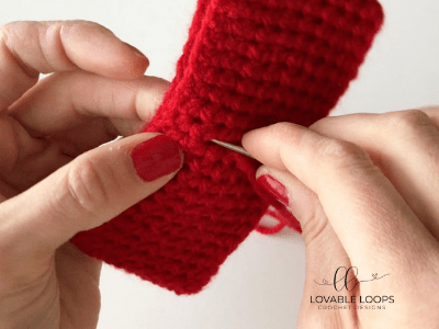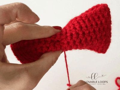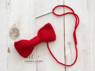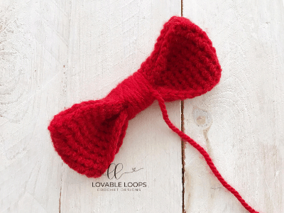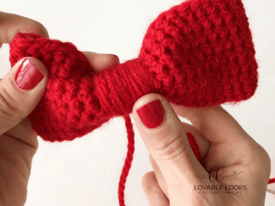 Secure the yarn tail in the back of the bow so that the middle section doesn’t unravel.