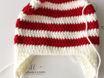 Ear flaps should be made using the same color yarn that you used for the last round of your hat.