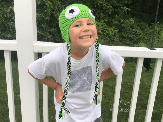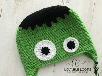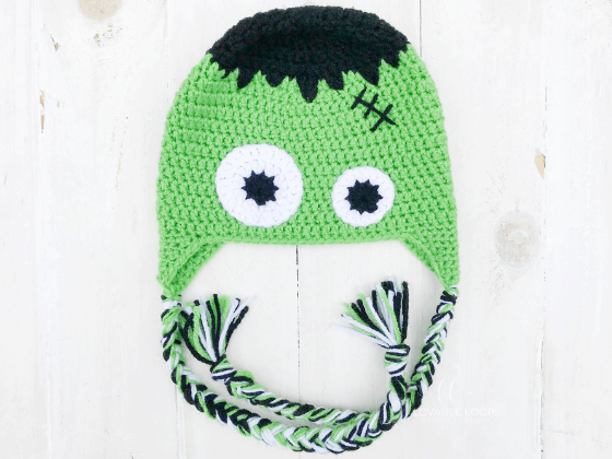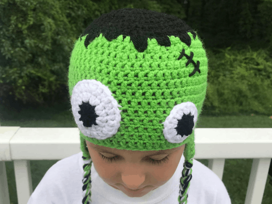 My husband, kids and I LOVE Halloween so it only made sense for me to design a hat inspired by the anguished monster of Mary Shelley’s Frankenstein. This hat is quick and easy to make. There aren’t a lot of pieces to sew on which means less ends to weave in! Yay for that! Enjoy. 🙂