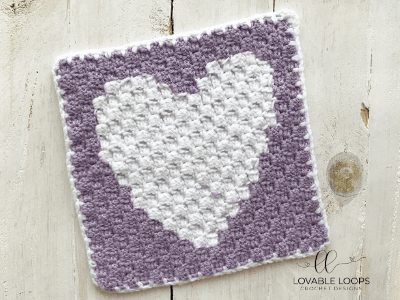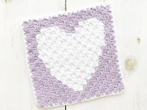 Crochet the pixel graph using the corner-to-corner (c2c) technique. Use the traditional method of making three double crochets for each square. I chained 5 to start each new row (instead of 6) and I chained 2 at the beginning of each square (instead of 3).
