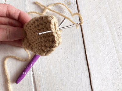 Use a tapestry needle to sew the end shut (the end where you left off, not your beginning chain).