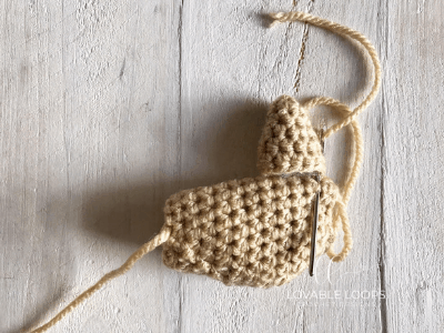 Use a tapestry needle to sew ears onto hat. They should be fairly close together (I attached mine on rounds 3 and 4).