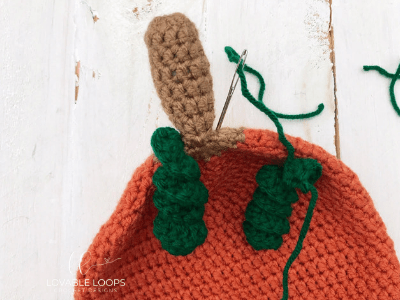 Stuff stem with poly fil and use a tapestry needle to sew onto top of hat as seen in picture.