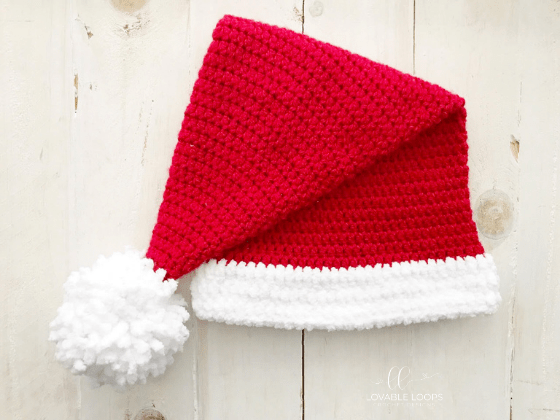 After designing my Santa Beanie and my Candy Cane Hat, I decided that I needed a traditional Santa hat. My husband and I are surprising our kids with a trip to Disney in a couple weeks and I’m hoping to have one of these hats for each of us to wear for our photo in front of Cinderella’s castle. I’m planning to make each hat in a different color so I’ll share photos as I finish them. Please tag me on Instagram or Facebook if you make your own!