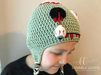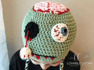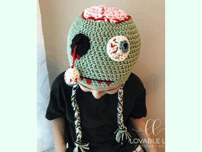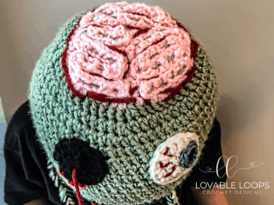 I was really excited when my kindergartner, Mark, asked me to make a zombie hat for him. I asked him to draw a picture of how he wanted it to look. We agreed that it needed to have a hanging eyeball and an exposed brain. He was super happy with how it turned out. I hope you like it as much as he does!