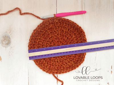 Rnd 6: ch 2, 2 hdc in same st, hdc in next 6 sts, 2 hdc in next st, hdc in next 6 sts, join and fasten off leaving a long tail for sewing onto hat [rnd 6 count= 16]