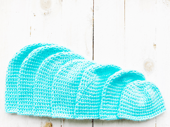 -Some of my sizes have a hat height that is shorter than the size chart recommends. I felt that some of the hats ended up being too tall. I based my opinion on my experience measuring hats for myself, my kids and my Etsy Shop customers. You can simply add a few more rounds of hdc if you want your hat to be taller.