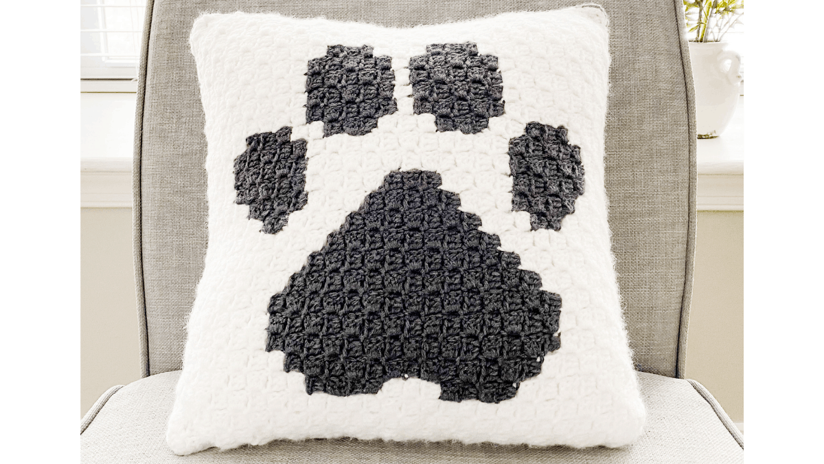 This corner to corner (C2C) Paw Print Pillow pattern would make a great addition to your home decor. You can change the colors to customize for your style. Or, you could make 12 of the paw graphs and sew them together (3 x 4) to make a heart afghan that would measure approximately 45 inches by 60 inches. I hope you like my pattern!